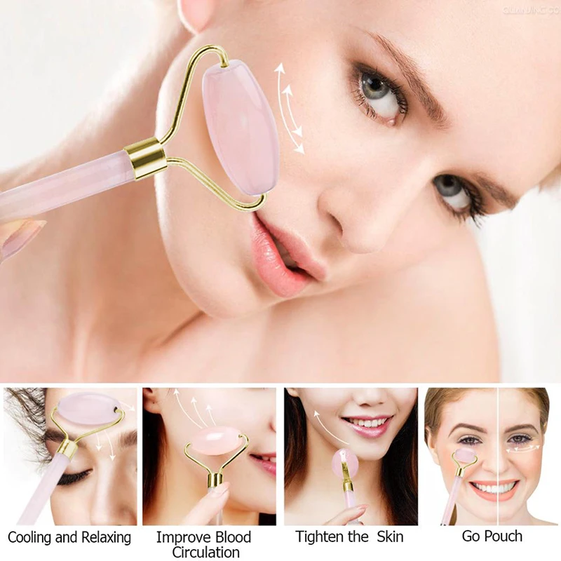 Addition Information of 1PC Rose Quartz Roller Double Head Slimming Face Massager Lifting Tool Natural Jade Facial Massage