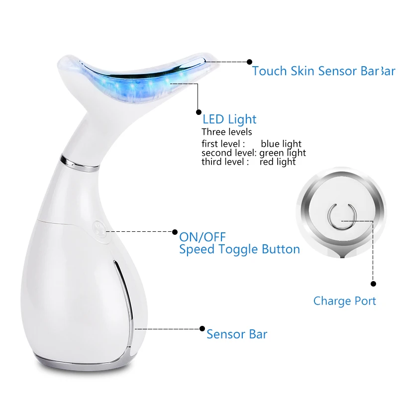 3 Colors Led Facial Massager Led Photon Therapy Face Neck Wrinkle Removal Machine Reduce Double Chin Skin Tighten Care Massager